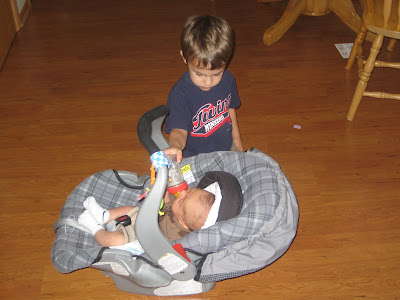Also, here are some random pics (more of a test than anything). Zach at the "last" Twins game, indulging, and some of Sam attempting to be cute.